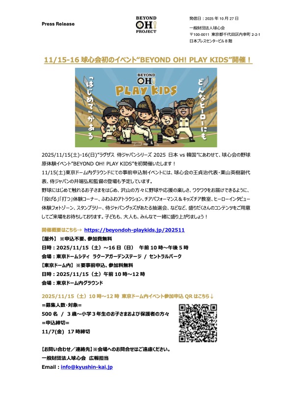 • 11/15-16 球心会 初のイベント”BEYOND OH! PLAY KIDS”開催!